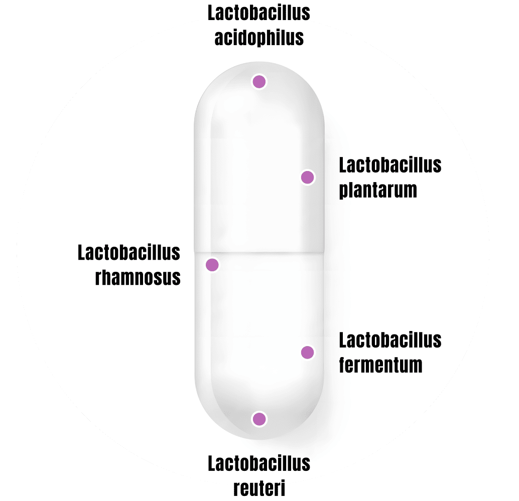 Lactobacillus acidophilus, Lactobacillus plantarium, Lactobacillus rhamnosus, Lactobacillus fermentum, Lactobacillus reuteri.